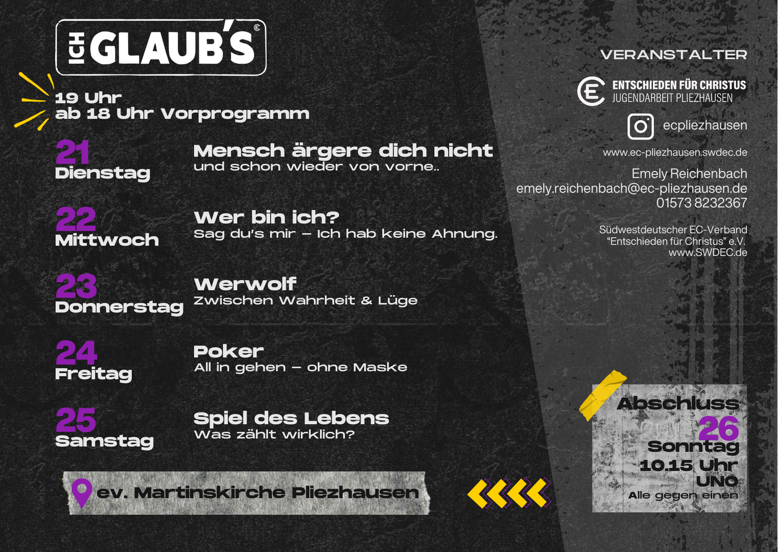 Du bist über 13 Jahre alt? Dann schnapp dir deine Freunde und komm vorbei! 5 Abende voller Action, Musik, Storys und echtem Glauben.